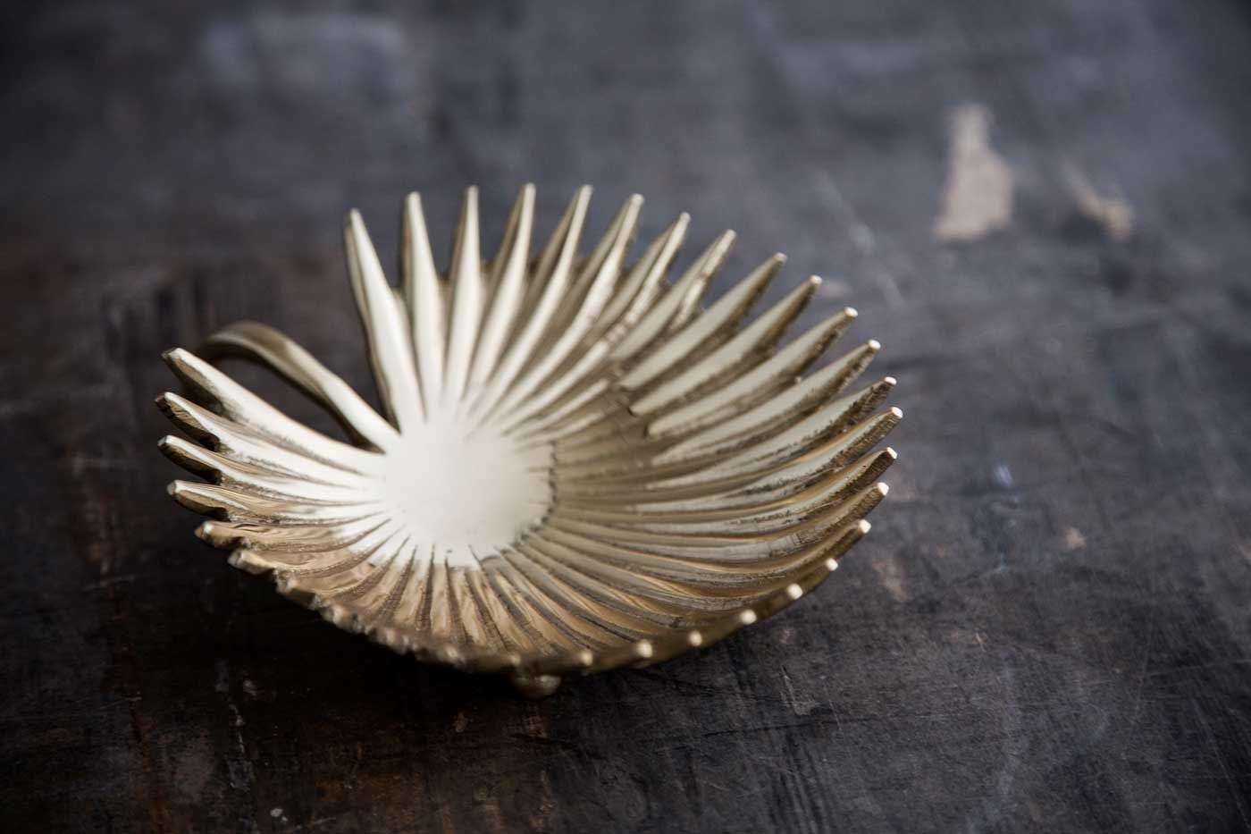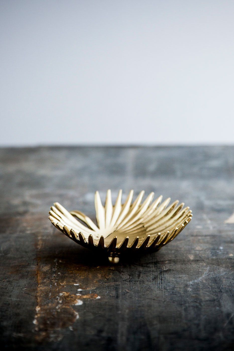 Vackert mindre fat i guldfärgat nickel i form av ett plamblad. En underbar detalj och gyllene blickfång. Perfekt som elegant inredningsdetalj eller mindre förvaring.