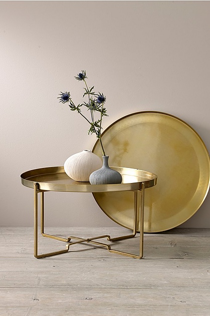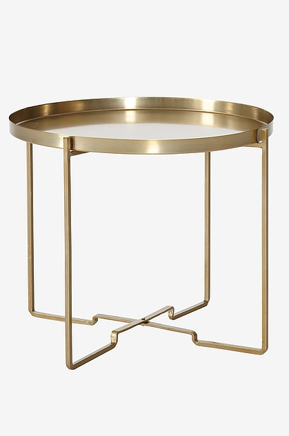 Soffbord med avtagbar bricka. Hopfällbart stativ. Av metall.