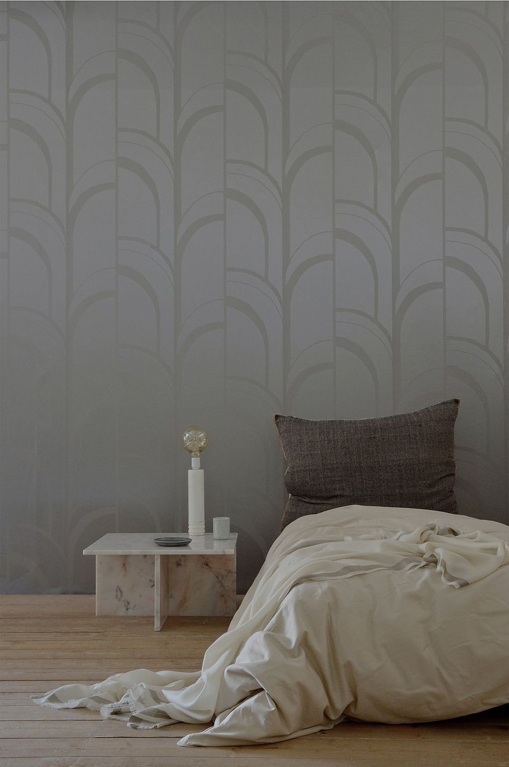 Inspirationen till mönstret Reflections kommer från gamla speglar och bågformade fönster. För att få rätt rytm på väggen så bröts dessa former upp i partier som genom sin monokroma färgsättning bara blir som reflektioner på väggen. Tapeten är oerhört lugn när den sitter på väggen och lämpar sig likaväl att tapetsera alla väggar som att göra en fondvägg. Blandningen av matta och blanka tryckfärger gör att tapeten ändrar uttryck beroende på hur ljuset faller på väggen och vilken tid på dagen det är. Reflections är en non woventapet, vilket gör tapetseringen enklare genom att du stryker limmet direkt på väggen och sedan sätter upp tapeten. Ett vävlim skall användas, eftersom ett vanligt tapetlim är gjort för papptapeter. Tillverkad i Sverige.